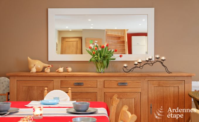 Je zult meteen vallen voor de charmante omgeving en het authentieke karakter dat deze vakantiewoning biedt. Dit is een perfecte omgeving voor een geweldige familievakantie, waar iedereen iets vindt om te ontspannen en te genieten. Kinderen zullen zich zeker vermaken in de speelkamer en in de prachtige tuin is het heerlijk vertoeven in de frisse buitenlucht van de Ardennen. Volwassenen zullen ook in staat zijn om te genieten van deze mooie landelijke omgeving dankzij het comfortabele tuinmeubilair, een terras, een barbecue en een petanqueterrein voor familieplezier. Je zult zeker mogelijkheden vinden om binnen gezellig met de familie bij elkaar te komen dankzij de ruime en zeer sfeervolle woonkamer. Rond de houtkachel is een comfortabele zithoek ingericht voor gezellige avonden bij het vuur. De eetzaal is lekker ruim en goed ingericht om mooie tafels te huisvesten. Je kunt ook rekenen op een volledig uitgeruste keuken, perfect om de amateurkoks in hun beste gerechten te doen slagen. Je zult tot slot genieten van 3 slaapkamers en 2 badkamers, verdeeld over de twee verdiepingen van de gite.