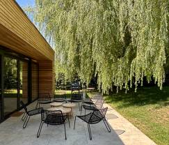 Buiten zijn de tuin en het terras helemaal heraangelegd in de lente van 2025. Het terras is voorzien van mooi tuinmeubilair, ligstoelen en een barbecue voor heerlijke zomerse maaltijden. Voor de fietsliefhebbers is er een beveiligde fietsenstalling en een fietsreinigingskit beschikbaar. De ontspanningsruimte en loungeruimte bieden extra comfort en gezelligheid.