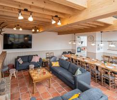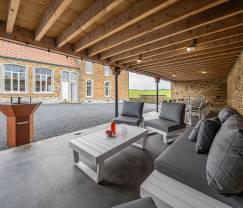 De woning beschikt over 6 slaapkamers en 5 badkamers, allemaal volledig gerenoveerd en comfortabel ingericht. In de ruime woonkamer kan je gezellig samenzitten bij de houtkachel. De kinderen zullen zich zeker niet vervelen in de speelkamer met een voetbaltafel. Buiten is er het mooie, grote overdekte terras waar je kan genieten van de rust en het uitzicht op de omliggende velden en boerderijen.