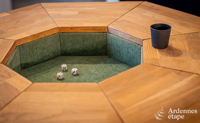 Binnen biedt het huis tal van ontspanningsmogelijkheden. Er is een ruime speelkamer met een flipperkast, tafelvoetbalspel, darts, sjoelbak en elektronische caféspelen. Daarnaast is er een comfortabele bar waar je kan genieten van een drankje.