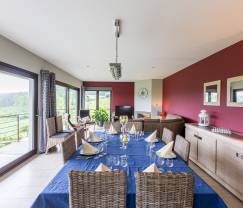 In de prachtige omgeving rondom dit 3,5-sterren vakantiehuisje beleef je een rustgevende vakantie, die perfect geschikt is voor een familie aangezien de kinderen genieten van een ruime tuin van 1800 m² en een speelkamer. Ze amuseren zich aan de voetbal- en pingpongtafel, terwijl de volwassenen samenkomen op het terras voor een aperitief of barbecue. Genieten van het prachtige uitzicht over de omgeving kan je tevens vanuit de schitterende woonkamer, die is uitgerust met grote glazen wanden en uitgeeft op een ruim balkon. De woonkamer bevat een eetkamer en een zithoek met een betoverende decoratie, die zorgt voor een warme en gezellige sfeer. De keuken biedt een zeer moderne en volledige uitrusting om zonder problemen je favoriete gerechten klaar te maken. Je beschikt over 5 slaapkamers met alle comfort en je geniet van 2 badkamers die zeer ruim zijn. De vakantiewoning stelt verder nog een privéparking ter beschikking met 4 parkeerplaatsen.