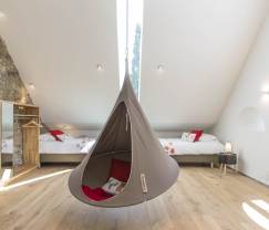 Kies voor jouw volgende vakantie in de Belgische Ardennen voor dit 3-sterren vakantiehuis in de buurt van Herve, provincie Luik. Het huisje ligt op de tweede verdieping van een traditioneel gebouw, omgeven door een grote privétuin. Het eigen terras van 25 vierkante meter en de tuin bieden een adembenemend uitzicht op het groene landschap. De vakantiewoning van 90 vierkante meter bestaat uit een grote slaapkamer met 4 eenpersoonsbedden, een volledig ingerichte keuken met open verbinding naar de eetkamer en een badkamer. Het wordt gekenmerkt door zijn prachtige zoldervolumes en zijn heldere design en warme inrichting. Met een privétoegang kun je rechtstreeks naar niveau 2 gaan, waardoor jouw privacy behouden blijft. Voor momenten van ontspanning geniet je van een omheinde tuin met een oppervlakte van 10.000 vierkante meter. Het omvat een basketbalveld, een petanquebaan en voetbalgoaltjes. Het leent zich gemakkelijk voor verschillende kinderspellen, bijvoorbeeld rondom de schommel.