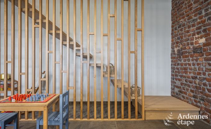 Wanneer je een oud huis met veel smaak en mooie materialen renoveert, is het resultaat dit prachtige vakantiehuis. De prachtige volumes met hedendaagse inrichting behouden de charme van het oude, met de zichtbare bakstenen en mooie balken. Alles straalt harmonie en warmte uit en doet je wegdromen. Hier is het heerlijk onthaasten. Je zal genieten van het licht, de ruimte, de heerlijke momenten bij het vuur, de comfortabele kamers. En de kinderen zullen ravotten op de speeltuigen en in de grote tuin. Het wordt hier een heerlijke tijd voor iedereen!