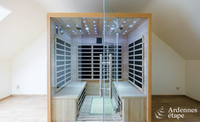 De woning is uitgerust met allerlei voorzieningen om je verblijf zo aangenaam mogelijk te maken. Zo is er een open haard voor gezellige avonden, een infraroodcabine en een sauna voor ultieme ontspanning. Voor de kinderen is er een speelkamer met kinderspelletjes. Ook buiten kunnen ze zich uitleven op de schommel en de glijbaan.