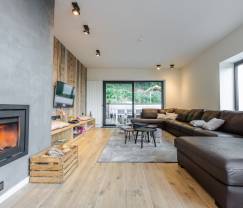 Deze luxueuze en lichte hedendaagse villa, vlak bij het dorp Houffalize en al zijn voorzieningen, kijkt aan alle kanten uit op de natuur. Ze telt 12 slaapkamers, waaronder een appartement met 2 stapelbedden, een volledig uitgeruste keuken en 10 badkamers. Er zijn ook 3 babybedjes en 2 kinderstoelen beschikbaar. Drie comfortabele zithoeken, waarvan twee met een cassettehaard en een met een houtkachel, bieden welgekomen ontspanning na een dag van buitenactiviteiten. In de speelkamer met pingpongtafel en voetbaltafel halen jong en oud hun hartje op.