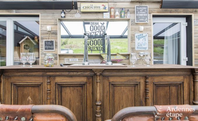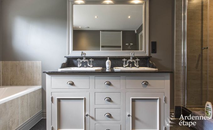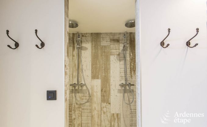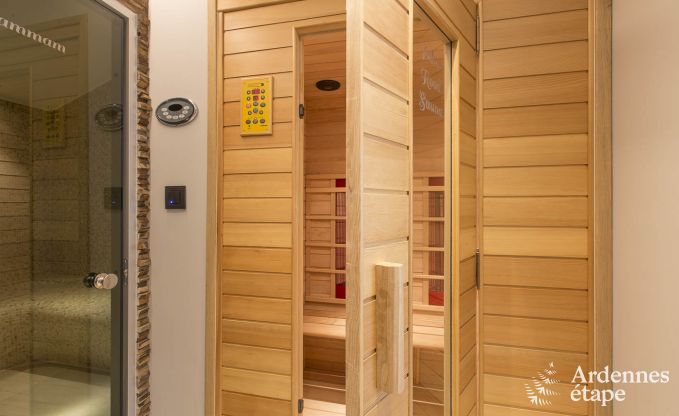 Met een grote capaciteit, wordt dit 4.5-sterren vakantiehuis, gelegen in de gemeente Houffalize, gekenmerkt door zijn luxe inrichting en gezellige sfeer. Gericht op gezinnen, wordt het gehuurd voor een weekend tot maximaal twee weken. De gite is heerlijk rustig gelegen aan het einde van een doodlopende weg en geeft je een panoramisch uitzicht op het landschap en de bossen. Met een oppervlakte van 350 vierkante meter, strekt het zich uit over 2 niveaus. Niveau 0 omvat een slaapkamer, een badkamer met bad en een ontspanningsruimte met sauna, infraroodcabine, stoombad, ligstoelen en 2 douches. Al deze hoogwaardige voorzieningen nodigen jou uit om te ontspannen na een dagje uit.