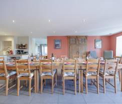 Ziehier een 3-sterren vakantiewoning van grote capaciteit waar families en vriendengroepen zich onmiddellijk op hun gemak voelen. Is het te wijten aan de charme van de oude stenen en de edele materialen van het huis of eerder aan de gepersonaliseerde decoratie van de 6 slaapkamers? Ongetwijfeld ligt het een beetje aan beiden.