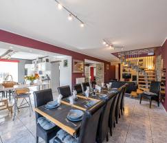 Dit vakantiehuis in de provincie Luxemburg heeft de charme van een authentieke boerderij weten te behouden, terwijl het tegelijkertijd een moderne indeling kent en een opmerkelijke grote ruimte biedt. Alle kamers in de vakantiewoning hebben een uniek karakter en ademen een vriendelijke sfeer uit. Dit is zeker het het geval met de 5 slaapkamers, de een nog mooier dan de ander, evenals de grote woonkamer met zijn stenen muren, een prachtige houten vloer en stijlvolle inrichting. Een tweede lounge met prachtige fauteuils doet perfect dienst als leeszaal. Vanuit een praktisch oogpunt zullen fijnproevers zeer verheugd zijn om de ​​moderne en ultra uitgeruste keuken te ontdekken. Ten slotte wacht buiten een grote privétuin waar kinderen een schommel, glijbaan, trampoline en petanqueterrein vinden.