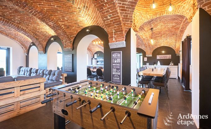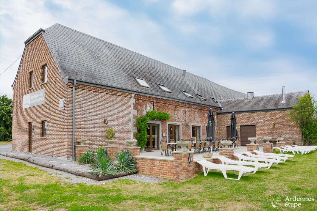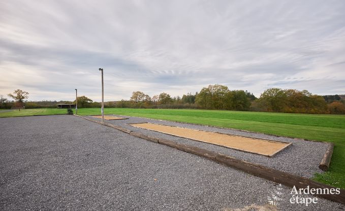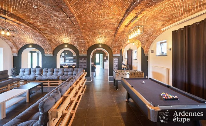 Deze voormalige hoeve werd ooit verbouwd tot hotel en is nu een schitterend vakantiehuis met alles erop en eraan. Ideaal voor grote families of vriendengroepen die in alle rust van de natuur willen komen genieten. Om te beginnen beschik je met je gezelschap heel comfortabel over 9 slaapkamers, elk met een eigen badkamer. Twee van de kamers sluiten trouwens op elkaar aan en er zijn 3 babybedjes aanwezig. Alle slaapkamers zijn trouwens ook vlot toegankelijk voor personen met beperkte mobiliteit, want voor hen is er in de benedenhal een speciale lift voorzien. De professionele keuken zal je aanzetten tot het bereiden van overheerlijke maaltijden. Terwijl de hobbykoks onder jullie zich uitleven, kunnen de anderen in de zitkamer een potje biljart spelen of een glas drinken in de gezellige bar, waar 3 koelkasten ervoor zorgen dat alle drankjes lekker fris geschonken worden. Anderen zullen dan weer misschien zin hebben om wat te luieren en van het prachtige uitzicht te genieten op het ruime terras of elkaar uit te dagen tijdens een vrolijk partijtje petanque, terwijl de kinderen zich uitleven op de speeltuigen in de enorme tuin.