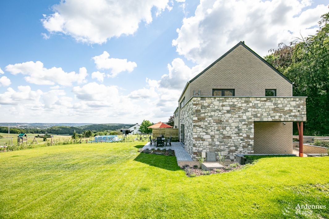 In dit vakantiehuis kom je weer op adem en laad je samen met familie of vrienden de batterijen op. De open leefruimte geeft rechtstreeks uit op het terras en de tuin, waardoor de natuur als het ware naar binnen gehaald wordt. Het hele jaar door geniet je van een verbluffend uitzicht, dat je meteen tot rust helpt te komen. In de tuin kunnen de allerkleinsten naar hartenlust ravotten terwijl de volwassenen ontspannen op het terras.