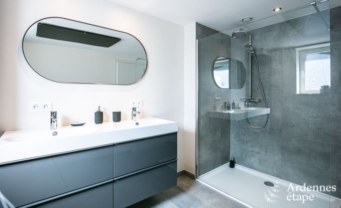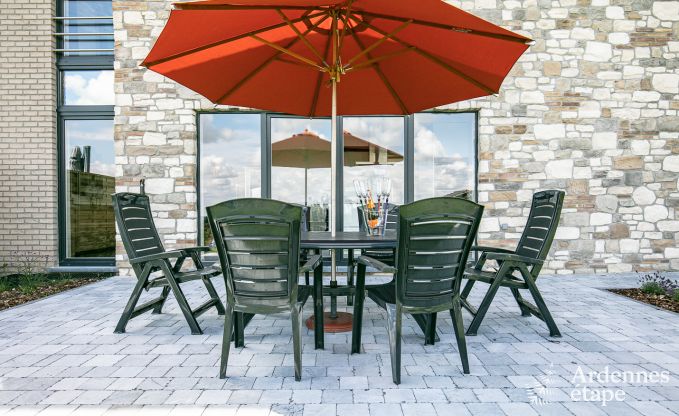 In dit vakantiehuis kom je weer op adem en laad je samen met familie of vrienden de batterijen op. De open leefruimte geeft rechtstreeks uit op het terras en de tuin, waardoor de natuur als het ware naar binnen gehaald wordt.  Het hele jaar door geniet je van een verbluffend uitzicht, dat je meteen tot rust helpt te komen. In de tuin kunnen de allerkleinsten naar hartenlust ravotten terwijl de volwassenen ontspannen op het terras.
