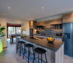 De woning is niet alleen een plek van comfort, maar ook van creatieve inspiratie. De decoratie omvat unieke sculpturen van een lokale kunstenaar, gemaakt van gerecycleerde materialen zoals hout en metaal. Deze kunstwerken, waaronder een gigantische hond, een ijsbeer en een hert, zullen zeker de kleintjes verrassen en fascineren.
