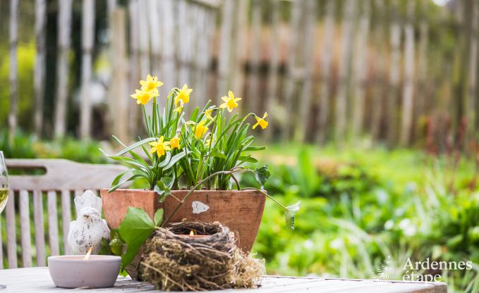 De eigenaren hebben bijzonder veel aandacht aan de decoratie besteed. Ze zijn beiden gebeten door tuinieren. De tuin vormt dan ook een ware uitnodiging tot rust en ontspanning. In functie van het seizoen zul je een grote verscheidenheid aan bloemen kunnen bewonderen.