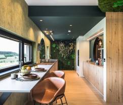 Dit prachtig vakantiehuis staat helemaal in het teken van luxe, ontspanning en wellness. Zo geniet je binnen van een loungeruimte met een stoombad en een sauna en op je terras van een jacuzzi. De binneninrichting draait helemaal rond (veel!) planten en plantaardige materialen. In de zitkamer zorgt de houtkachel voor een extra romantische sfeer. Je slaapkamer en badkamer zijn heel gezellig en origineel ingericht. Voor je baby is alles voorzien: babystoeltje, - badje en -bedje. Je fietsen kan je met gerust gemoed kwijt in de beveiligde fietsenstalling en voor je elektrische auto is een laadpaal voorzien.
