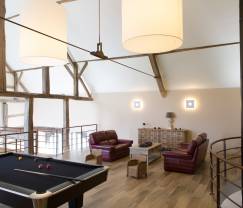 De prachtige omheinde privétuin, is de ideale plek om de barbecue aan te maken en er met de hele groep te genieten. Speel na het eten een partijtje petanque op het petanqueveld. Bij slecht weer is er ook: een biljart, het tafelvoetbalspel, de pingpongtafel of zelfs de ontspanningsruimte met sauna. Geniet dus van leuke activiteiten binnen het vakantiehuis of geniet van een ontspannende sauna. Der ontspanningsruimte heeft eveneens een badkamer met: twee douches, een wastafel en een WC.