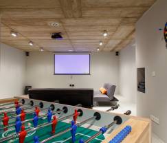 Wat je in de kelder van dit huis vindt, zal je ook gelukkig maken! Er is een home cinema met poefs en banken tot je beschikking om de grootste kinderen en volwassenen te vermaken. Alle ingrediënten voor avond vol plezier voor jong en oud.