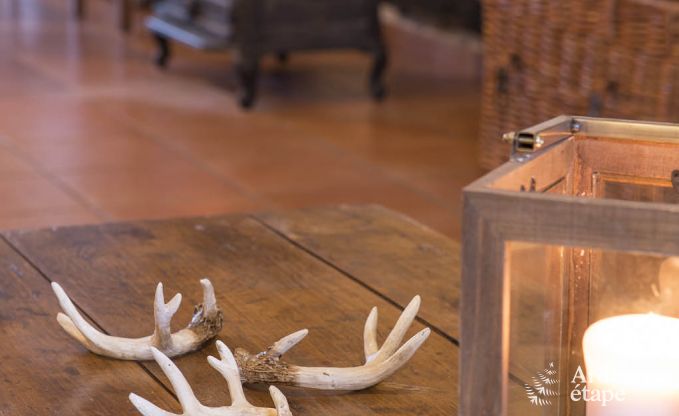 Dit mooie verblijf werd volledig opgetrokken uit natuursteen en werd zorgvuldig ingericht zodat je kunt genieten van een knus comfort. De uitrusting is van hoogstaande kwaliteit en de inrichting van het huis staat volledig in het teken van gezelligheid.