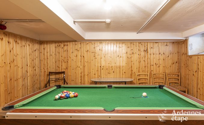 Het licht dat langs de vele ramen binnenstroomt, het knusse interieur met lichte tinten, de natuur die in elke kamer binnen piept… In deze karaktervolle woning uit 1930 voel je je meteen thuis! Na een dagje wandelen, fietsen of vissen, kan je gezellig aperitieven bij het knisperend haardvuur. Ideaal om lekker lang bij te praten. Wat als niet iedereen zin heeft in een rustige babbel? Geen probleem! Hier kan iedereen op zijn eigen manier genieten. Door wat extra vitamine D op te doen in de prachtige, grote privétuin (met schommel en glijbaan) bijvoorbeeld, of door een spelletje petanque te plannen op jullie eigen veld, door een frisse duik te nemen in het buitenzwembad of misschien gewoon met een partijtje biljart of tafelvoetbal.