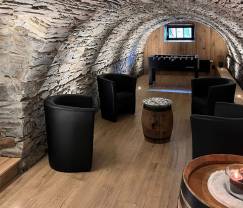 In de gezellige zitkamer is het heerlijk relaxen bij het haardvuur. In deze zitkamer is er ook een TV, kabeltelevisie, Hifi, DVD en draadloze internetaansluiting (doorheen heel het huis).