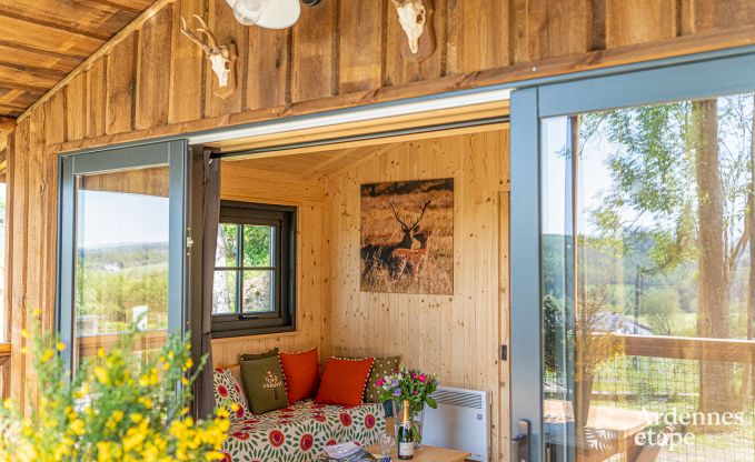 Op zoek naar een romantisch uitstapje in de natuur? Welkom in deze charmante, gezellige, kleine chalet op een prachtig terrein met een zalig uitzicht over de vallei. Gelegen vlak bij een rustig gehucht met een kruidenierswinkeltje, een verkoper van biologische groenten en fruit, een viswinkel en een restaurantje. Je beschikt over een slaapkamer, een badkamer, een woonkamer met tv en een volledig uitgeruste keuken. Begin je dag met een stevig ontbijt op je terras, terwijl je het adembenemend uitzicht over de vallei en de beboste heuvels in je opneemt. Verken dan samen de prachtige omgeving. Ontsteek bij je terugkeer de barbecue en geniet van een aperitiefje terwijl je hond in de tuin ravot. Geniet daarna van een gezellig diner bij kaarslicht aan de grote houten tafel onder de bomen.