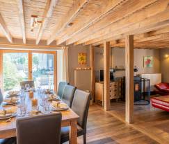 Deze vakantiewoning heeft karakter en verleidt door zijn warme uitstraling. De leefruimtes met de muren uit natuursteen en zichtbare balken verlenen het geheel een onweerstaanbare toets. De vertrekken zijn uniek zodat het een waar plezier zal zijn om er met je familie samen te zijn. In de zitkamer, ingericht rond de houtkachel, liggen gezellige avonden bij de haard in het verschiet. Een beetje verder bevindt zich de eetkamer waar je allemaal samen in een opgeruimde en vrolijke stemming de maaltijd kunt nuttigen. De keuken is goed uitgerust en zeer functioneel zodat je beste recepten gegarandeerd zullen lukken. Buiten deze klassieke momenten van samenzijn, komen jong en oud ook wat betreft ontspanning en vermaak aan hun trekken. Er zijn namelijk een speelzaal en een ontspanningsruimte met infraroodcabine. Dankzij de 5 slaapkamers en de 3 badkamers kan dit vakantiehuis met gemak 12 personen herbergen. Tot slot is er ook nog een mooie privétuin met een petanquebaan, en een terras met barbecue en plancha om te profiteren van de zomeravonden.