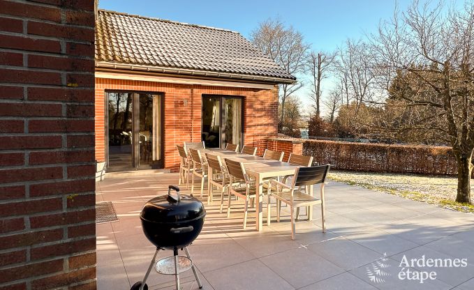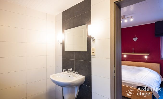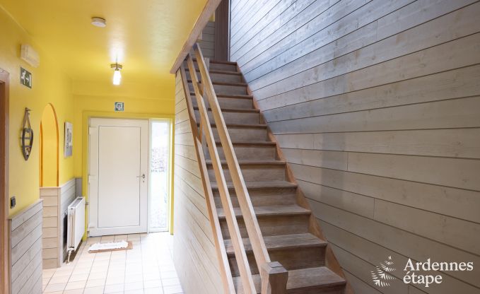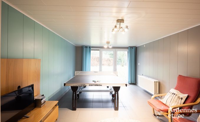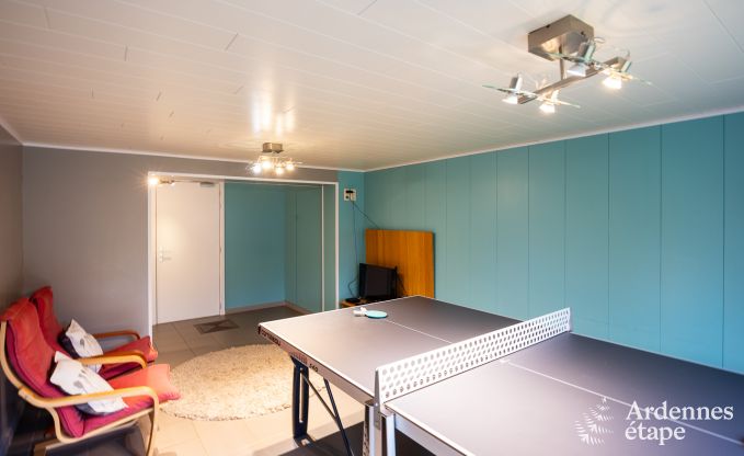 12 personen zullen hier de perfecte condities aantreffen voor hun verblijf. De 4 slaapkamers zijn zeer comfortabel en mooi ingericht. Drie slaapkamers bevinden zich op de eerste verdieping, de vierde met zijn privébadkamer ligt op de begane grond. De jongste leden van de groep zullen snel hun hoofdkwartier in de speelzaal in de kelderverdieping vestigen voor vurige pingpongpartijtjes. De hele groep zal kunnen samenkomen in de ruime zitkamer met houtkachel alvorens in de mooie eetkamer in een gezellige sfeer aan tafel te schuiven. Je zult kunnen rekenen op een volledig uitgeruste en heel functionele keuken voor grootse en ongetwijfeld heuglijke maaltijden! Het exterieur bestaat uit een geweldig landelijk kader en een goed onderhouden privétuin waar de kinderen een schommel en een glijbaan zullen aantreffen. Installeer je bij goed weer op het terras in de tuinmeubelen en profiteer van de barbecue.