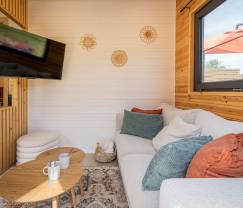 Heel fijn tiny huisjes met van alle gemakken voorzien. Uitstekende bedden, goed keuken en douch. Hottub was heerlijk