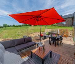 De buitenruimte is zelfs groter dan het woonoppervlak en zal de kinderen ongetwijfeld blij maken. Je kan genieten van een privétuin met diverse buitenspeeltuigen zoals een schommel, glijbaan en een trampoline. Voor ontspanning is er een houten hottub waar je heerlijk in kan bubbelen na een dag vol avontuur. Daarnaast is er een gezellig privéterras met prachtig uitzicht, comfortabel tuinmeubilair en een barbecue om samen smakelijke maaltijden te bereiden.
