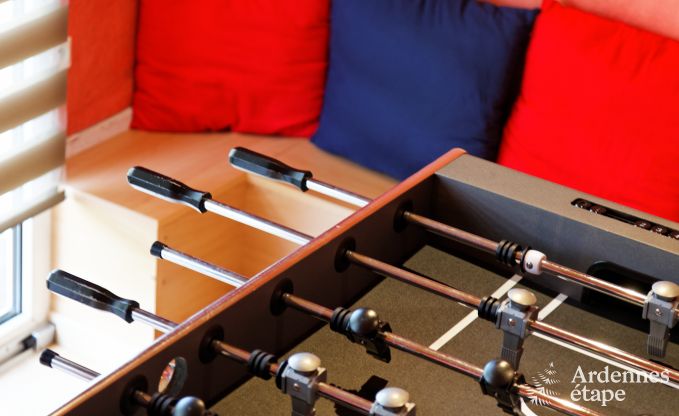 Dit vakantieverblijf is modern en comfortabel. Je voelt je echt thuis en daar draagt de houtkachel zeker toe bij. Voor ieders plezier werd er een speelzaal ingericht: er liggen leuke tafelvoetbalpartijtjes in het verschiet!