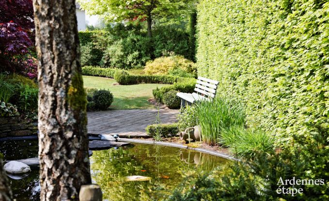 De bosrijke tuin geniet van een ideale ligging en zal tuinliefhebbers in verrukking brengen. Dit is nu eens een plek waar het echt goed toeven is en waar gezinnen een onvergetelijke vakantie zullen doorbrengen. De tuin is volledig afgesloten door een heg. Je vindt er bovendien een decoratief vijvertje.