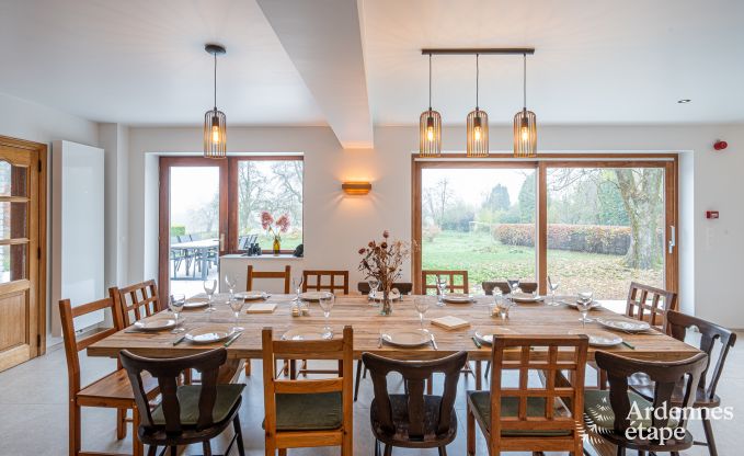 Maison rénovée avec goût, chambre spacieuse, gîte lumineux, très fonctionnel. Magnifique vue depuis le jardin. Espace de vie très spacieux pour 10personnes. Les propriétaires sont vraiment accueillants et disponibles.
