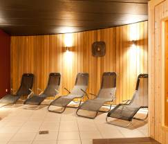 De ontspanningsruimte met sauna wacht op jou voor een heerlijk moment van rust.