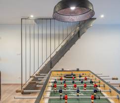 De privétuin is een waar paradijs voor kinderen, met schommels, buitenspeeltuigen en spellen voor buiten. Terwijl de kleintjes zich vermaken, kunnen de volwassenen ontspannen met het comfortabele tuinmeubilair, bij de vuurkorf of genieten van een gezellige barbecue. In de woning vind je een sfeervolle cassettehaard en een tafelvoetbalspel voor urenlang plezier.