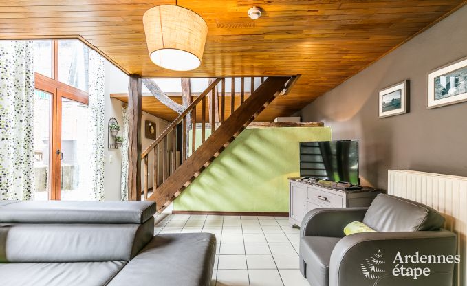 De vakantiewoning bevindt zich preciezer in het dorpje Malempré. U zult hier kunnen genieten van een vakantie op de boerderij. Ter plaatse kunt u hoeveproducten kopen of genieten van de smaken van de plaatselijke keuken. Het aangename salon heeft een typisch karakter dankzij de stenen muur en de houtkachel die u gedurende winteravonden lekker zal verwarmen. U zult dit typisch karakter trouwens in de hele woning terugvinden. Van de leefkamer, naar de badkamer en tot in de 2 slaapkamers.