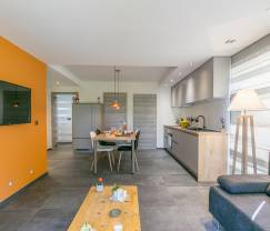 Dit kleine maar knusse vakantiehuis voor 2 tot 4 personen met 1 slaapkamer, 1 badkamer en een slaapbank is ideaal voor koppels, jonge ouders en ook aangepast voor personen met een beperkte mobiliteit. De vele zachte grijstinten, de warme accent-muur in de leefruimte en de keramische patroontegels in de badkamer geven dit 3-sterren vakantiehuisje een gezellige, trendy vibe. De ideale...
