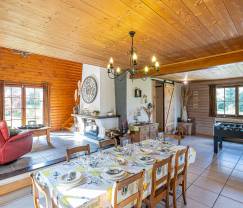 De woonkamer is een gezellige plek om te ontspannen na een dag vol activiteiten. Er is een tafelvoetbal voor wat plezier en een houtpelletkachel voor de warmte en gezelligheid. Er is ook een tweede zitkamer met een cassettehaard en een piano voor de muziekliefhebbers.