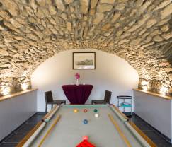 Deze voormalige brouwerij in Vaux-Chavanne, nabij Manhay, provincie Luxemburg, is omgebouwd tot een luxe, comfortabele vakantiewoning voor negen personen. Bij aankomst valt direct de combinatie van authentieke elementen (stenen muren en houten balken) met luxueuze materialen op, wat dit vakantiehuisje een unieke uitstraling geeft. De riante ontspanningsruimte met infrarood sauna en bubbelbad zal zeker in de smaak vallen. Of wat te denken van de speelkamer met biljart, die werd gerealiseerd in de kelder van het verblijf, onder een prachtige stenen gewelf. De ruime woonkamer met comfortabele banken en houtkachel is een aangename plek om de avond door te brengen. Tevens zijn faciliteiten als draadloos Wi-Fi netwerk en kabeltelevisie in de woning aanwezig. Vanuit de gezellige eetkamer kom je in de moderne, verhoogde keuken, met inductiekookplaat, oven, magnetron, Amerikaanse koelkast en afwasmachine. Ook aan alle keukenapparatuur is gedacht, van de waterkoker tot het Senseo koffiezetapparaat, van de broodrooster tot de soepmixer. Het vakantiehuis telt vijf lichte slaapkamers, waarvan twee slaapkamers met een privébadkamer met douche en wastafel. In de ruime, gezamenlijke badkamer vindt u een heerlijk ligbad, altijd fijn als u een avondje wilt ontspannen. Op een van de slaapkamers is er een kinderbedje aanwezig, evenals een kinderstoel. Op zomers dagen geniet u heerlijk van de zon op het terras. Tuinmeubilair en parasol zijn present. En mocht u van een lekkere barbecue willen smullen, dan is ook dat mogelijk.