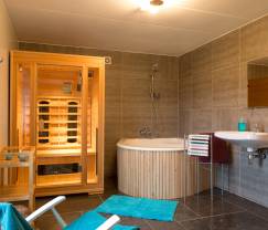 Bubbelbad (2 pers), Infraroodcabine (2p), Wastafel x 1