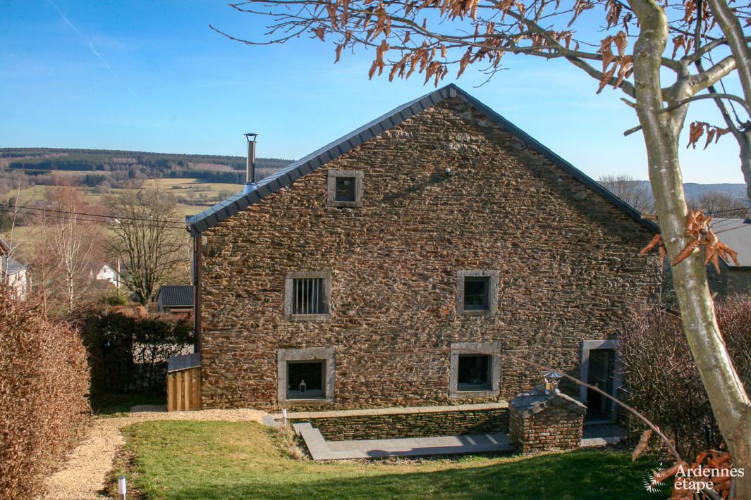 Dit huis in Ardense steen met zichtbare balken is de essentie van pure charme ... Hier ontmoeten oud en nieuw elkaar in een supergezellige en warme sfeer. Nestel je heerlijk met een boek bij de houtkachel in de woonkamer. Of warm je op in de infraroodcabine voor een moment van opperste ontspanning(puur genieten na een wandeling in de buitenlucht)! In de zomer geniet je van een aperitief op het privéterras, terwijl de kinderen in de tuin ravotten. Puur plezier voor jong en oud!