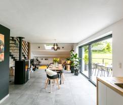 Zeer mooie moderne, smaakvol ingerichte woning met ruim terras. Wij werden zéér vriendelijk ontvangen door de eigenaars die een heel uitgebreide rondleiding gegeven hebben. Woning is mooi gelegen in het groen. Handdoeken lagen klaar in de sauna, flesje water en bier in de koelkast, kachel staat reeds aan, fijne attenties ! De eigenaars hebben ervoor gezorgd dat er heel wat wandelkaarten liggen die je kan meenemen op de wandeling, zeer practisch ! Wij gaan terug !