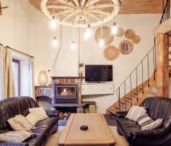 Het interieur van dit vakantiehuis zal je onmiddellijk in vervoering brengen. Het landelijke karakter verleent een bijzonder warme toets aan alle vertrekken. De woonruimte valt op door de muren uit natuursteen, het elegante meubilair en de schoorsteenmantel. Hier breng je gegarandeerd mooie avonden in een super gezellige sfeer door. Het logies biedt veel ruimte waardoor 8 personen er een voorbeeldig comfort zullen aantreffen. Zo zul je bijvoorbeeld beschikken over een grote eetkamer waar de hele familie kan samenkomen. De keuken is eveneens volledig uitgerust: alles is voorhanden voor een succesvolle bereiding van je lievelingsgerecht. In de 2 badkamers kun je naar believen douchen of een bad nemen. In één van de 4 slaapkamers staan stapelbedden. Buiten beschik je over een tuin die gemeenschappelijk is met het naburige logies. Je kunt er in alle rust ontspannen en genieten van het spel van de kinderen die zich uitleven in de tuin met een schommel, glijbaan, trampoline en voetbaldoelen. Vergeet de barbecue niet en profiteer met volle teugen van de zwoele zomeravonden.
