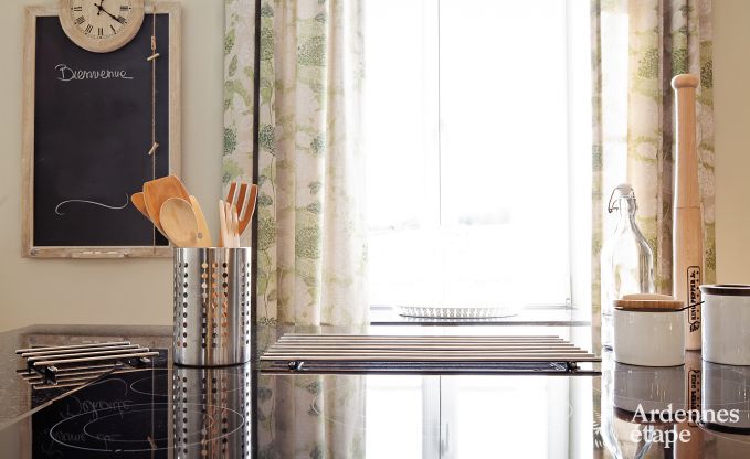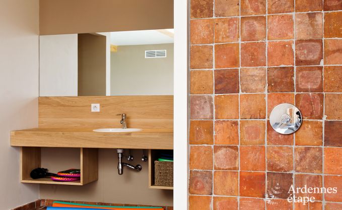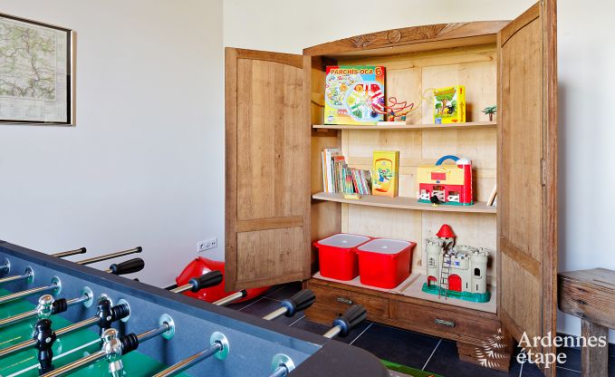 Dit oude gebouw uit de 18e eeuw werd in 2011 gerenoveerd. De eigenaren hebben zijn onweerstaanbare charme op geslaagde wijze weten te combineren met een modern comfort. Het resultaat is een paradijselijke oase voor groepen die op zoek zijn naar ontspanning in het vreedzame kader van het Ardense platteland. Dit geweldige vakantiehuis is voorzien op het onthaal van 16 personen en heeft maar liefst 6 slaapkamers met elk een eigen badkamer. De keuken is ruim en is zo goed uitgerust dat iedereen de handen uit de mouwen zal kunnen steken en zijn eigen bijdrage tot de maaltijd zal kunnen leveren.