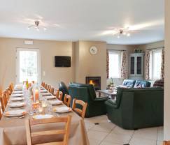 Dankzij de 8 ruime, goed uitgeruste en mooi aangeklede slaapkamers kunnen in dit vakantiehuis 20 personen logeren in een optimaal comfort. Het huis bestaat uit 2 verdiepingen, waarover de 3 badkamers verdeeld zijn. De indeling van de ruimtes is heel praktisch zodat iedereen zich snel thuis voelt. De fijnproevers zullen blij zijn als ze de charmante en goed uitgeruste keuken ontdekken op het gelijkvloers. Hier is alles aanwezig om zonder moeite je beste recepten klaar te maken en de hele familie te plezieren. In de eetzaal kan je een prachtig diner organiseren in een uiterst gezellige sfeer. De leefruimte is ruim, heeft veel lichtinval en zorgt zonder twijfel voor aangename momenten met iedereen samen. In de salon kun je dan weer perfect genieten van een aperitiefje of een gezellige winteravond bij het vuur. In de zomer kan je hier ook genieten op het terras en in de grote privétuin met zicht op de landelijke omgeving. Of organiseer eens een lekkere barbecue.