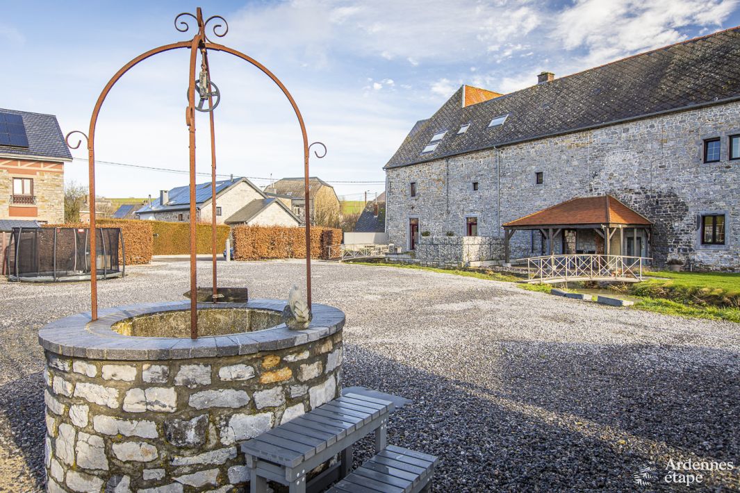 Dit is de ideale plek om je als familie in alle rust te herbronnen. Je geniet in stilte van de omgeving, terwijl de kinderen hun benen strekken op het immense speelterrein. Daarnaast kunnen ze kennismaken met het leven op de boerderij want deze is het hele jaar door actief. Samen met het naburige vakantiehuis staat er een speelkamer en een ontspanningsruimte met sauna en fitnesstoestellen ter beschikking. Het verblijf heeft 2 badkamers en 2 slaapkamers. De woonkamer is heel ruim en er heerst een warme sfeer dankzij de ongepleisterde balken en het elegante houten meubilair. Een aperitiefje in de zithoek of uitgebreid tafelen in de eetkamer: er staan je vast en zeker gezellige momenten te wachten. Bovendien beschik je over een volledig uitgeruste keuken, ideaal dus om de honger van de hele familie te stillen. Ook in de tuin kan je ten volle genieten, bijvoorbeeld van de stenen barbecue en van het zwembad om je heerlijk te verfrissen in de zomer.