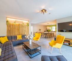 De vakantiewoning beschikt over 5 comfortabele slaapkamers en 5 moderne badkamers, wat zorgt voor voldoende privacy en gemak voor alle gasten. Voor gezinnen met kleine kinderen is er een babybedje en een kinderstoel aanwezig, zodat ook de allerkleinsten zich meteen thuis voelen. De gezellige woonkamer is uitgerust met alles wat je nodig hebt voor een aangename tijd samen, en er is zelfs een speciale ruimte ingericht voor een baby, zodat ook de jongste gasten comfortabel kunnen verblijven.