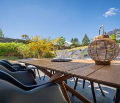 Buiten geniet je van een ruime privétuin met tuinmeubilair waar je heerlijk kan ontspannen of samen eten. De houtskoolbarbecue nodigt uit tot gezellige avonden met lekker eten in de buitenlucht. Daarnaast is er een privéterras waar je in alle rust kan genieten van de frisse Ardennenlucht. Dankzij de ligging in het centrum van het dorp ervaar je hier de echte landelijke sfeer, terwijl je toch dicht bij alle voorzieningen bent.