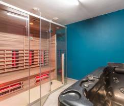 Op de eerste verdieping vind je 2 comfortabele slaapkamers met elk een eigen badkamer. Koppels zullen vooral genieten van dit onderdeel van het comfort, waardig aan dat van een hotel. Om jouw verblijf een ​​vleugje luxe te geven, werd een wellness-ruimte met een infraroodcabine en een jacuzzi naast de kamers gebouwd. Ontspanning gegarandeerd!