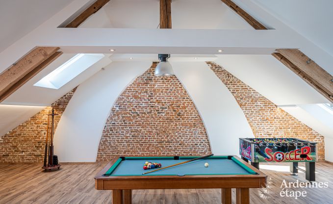 Welkom in deze prachtige vakantiewoning voor 14 personen in Moustier-en-Fagne! Met 6 slaapkamers en 6 badkamers is er genoeg ruimte voor iedereen om comfortabel te verblijven. Deze woning straalt karakter en luxe uit, perfect voor een onvergetelijke vakantie in de Ardennen. De woonkamer is uitgerust met een gezellige open haard , perfect voor de koude avonden. Voor de liefhebbers van...