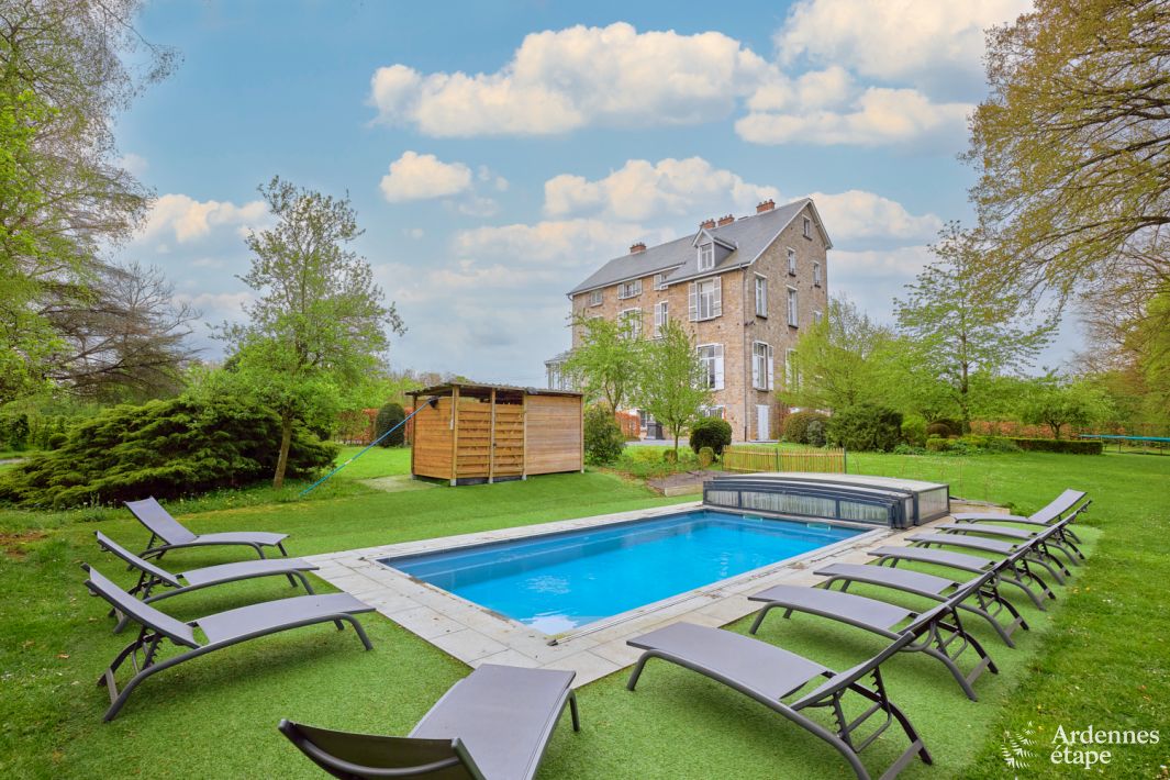 Welkom in dit prachtige kasteel gelegen in Nassogne, een ideale vakantiewoning voor 24 personen . Dit majestueuze landhuis, gebouwd in 1910 en gerenoveerd in 2015, biedt een perfecte combinatie van traditionele charme en modern comfort. Met 9 slaapkamers en 8 badkamers , is er voldoende ruimte voor iedereen om te ontspannen en te genieten. De authentieke inrichting en het antieke...