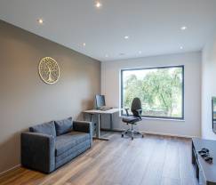 Voor degenen die moeten werken tijdens hun verblijf, is er een bureau voor telewerken. Het interieur is een perfecte mix van ontspanning en vermaak, met tal van kinderspellen en andere voorzieningen om je verblijf zo aangenaam mogelijk te maken.